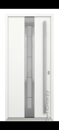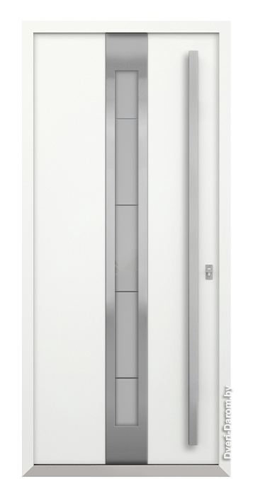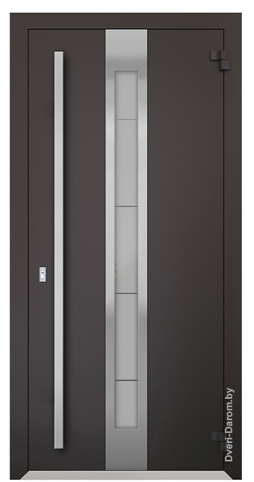 Отделка снаружи: Оцинкованная сталь, атмосфероустойчивая порошковая краска (цвет на выбор), декоративная вставка из нержавеющей стали, стеклопакет