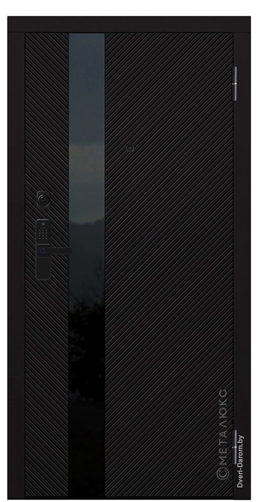 Отделка снаружи: панель МДФ 16 мм, пленка, цвет «Лофт черный» (83), вставка из черного глянцевого стекла